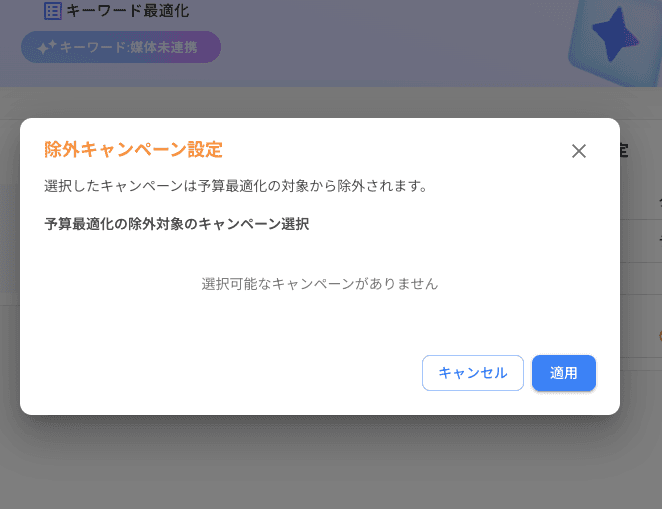 特定のキャンペーンを予算最適化の対象から除外できます。除外したキャンペーンの予算はAIによる変更が行われません。